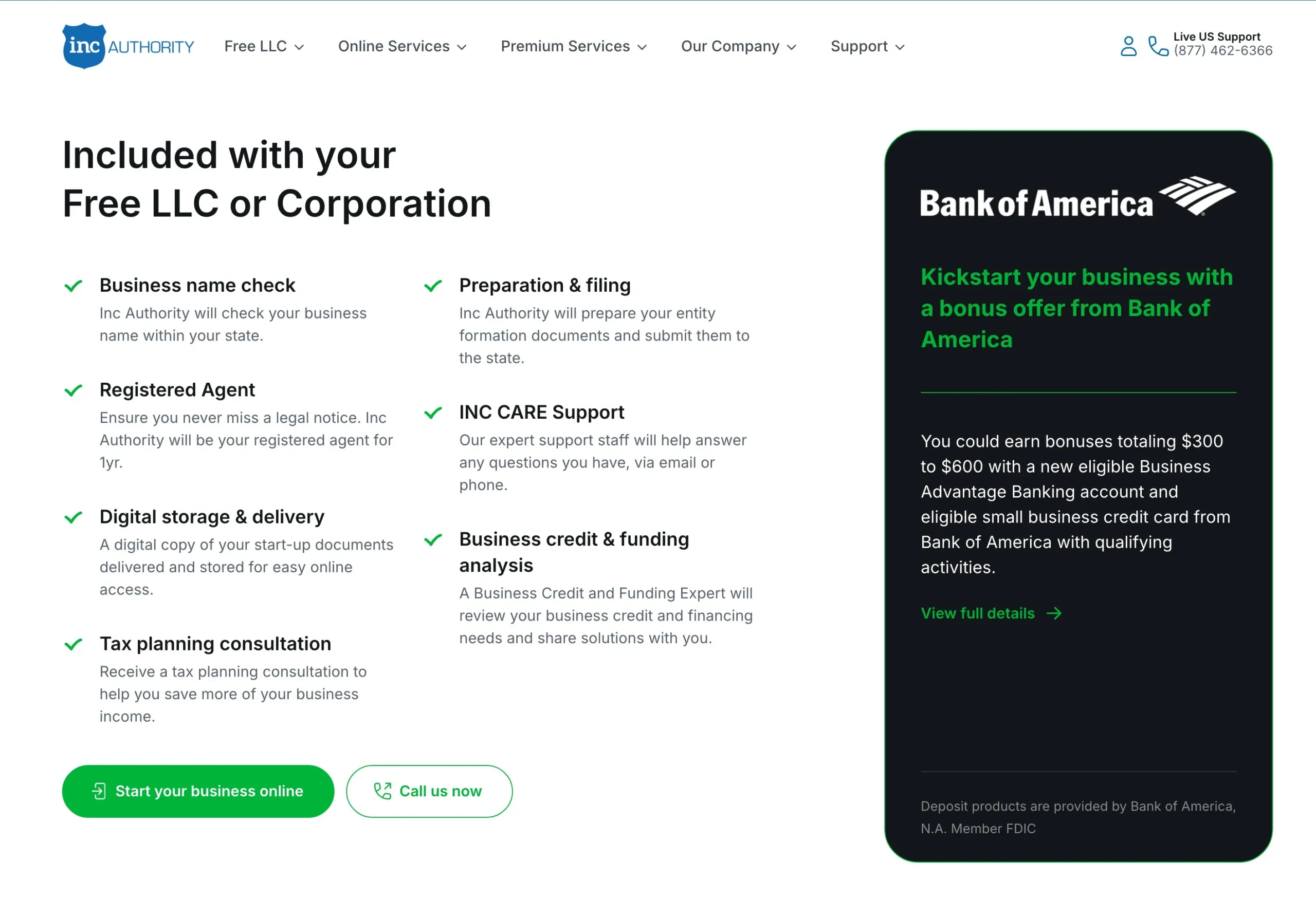 Inc Authority Basic and Premium Packages. The basic one offers free LLC formation and free registered agent service for 1 year along with other basic services. The premium package offers more advanced services including operating agreement drafting, obtaining EIN, and such.
